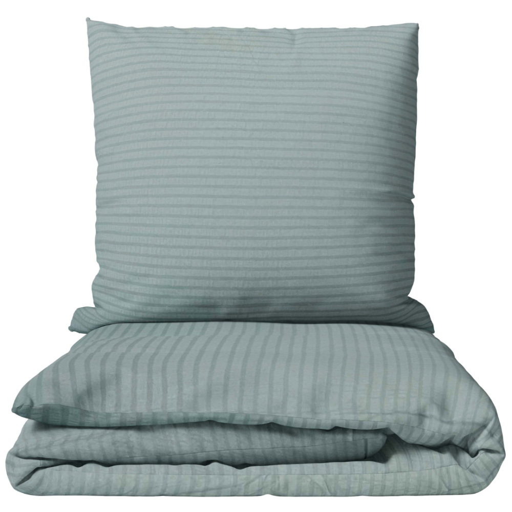 Grau-grünes Bettwäsche-Set mit feinem Muster. Dieser ruhige Farbton vereint die Eleganz von Grau mit der Frische von Grün und passt daher perfekt sowohl in klassische als auch in moderne Interieurs. Die einheitliche Farbgestaltung und das minimalistische Design verleihen dem Raum ein ordentliches und harmonisches Erscheinungsbild. Dieses Bettwäsche-Set bringt Natürlichkeit, Gemütlichkeit und subtile Ästhetik ins Schlafzimmer.